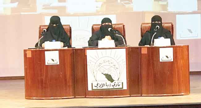 نظم نادي أبها الأدبي بالتعاون مع الهيئة العامة للثقافة أول ندوة نسائية مفتوحة بعنوان ” الوطن والمرأة.. المستقبل والمسؤولية ” ضمن فعاليات الاحتفاء باليوم الوطني 88 تحدثت فيها د. غادة آل زياد وصالحة الجرعي وأدارتها زهرة آل ظافر .