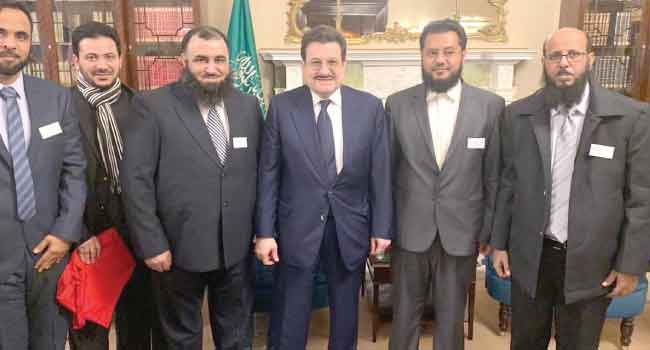 استقبل صاحب السمو الملكي الأمير محمد بن نواف بن عبدالعزيز سفير خادم الحرمين الشريفين لدى المملكة المتحدة أمس الأول بمقر السفارة عددًا من أعضاء هيئة التدريس والأكاديميين بالجامعات السعودية الذين يشاركون في ورش ولقاءات علمية نظمها كرسي الملك فهد بجامعة لندن بالتعاون مع الملحقية الثقافية في المملكة المتحدة .