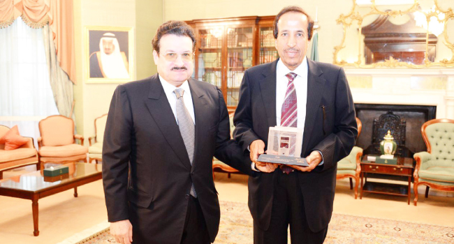 استقبل صاحب السمو الملكي الأمير محمد بن نواف بن عبد العزيز سفير خادم الحرمين الشريفين لدى المملكة المتحدة أمس الأول صاحب السمو الأمير سعود بن عبدالله بن ثنيان، رئيس الهيئة الملكية للجبيل وينبع، رئيس مجلس إدارة شركة (سابك) يرافقه الرئيس التنفيذي لشركة سابك الأستاذ يوسف البنيان والوفد المرافق في مقر السفارة .