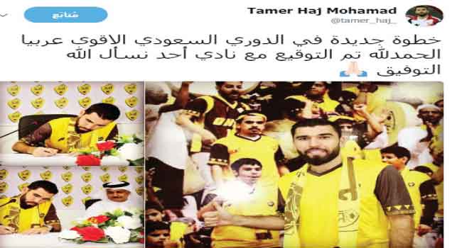 وأعلن مجلس إدارة نادي أحد عن تعاقده مع تامر حاج قادماً من نادي ظفار العماني، مساء الثلاثاء، لمدة موسم واحد قابل للتجديد.