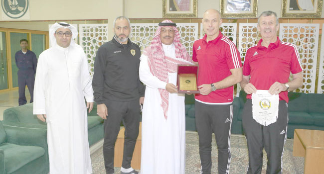 الخبير التحكيمي يزور نادي الخليج ويجتمع بإدارة فريق كرة القدم