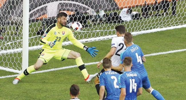 تأهل منتخب ألمانيا إلى الدور ربع النهائي لبطولة كأس أوروبا 2016 لكرة القدم بفوزه على نظيره السلوفاكي بثلاثة أهداف دون مقابل امس في ليل بفرنسا ضمن الدور ثمن النهائي للبطولة.وسجل أهداف ألمانيا جيروم بواتبنغ وجوميز ودراكسلر في الدقائق 7 , 42 , 62 ، فيما أهدر الألماني مسعود أوزيل ركلة جزاء لبلاده في الشوط الأول تصدى لها الحارس السلوفاكي ببراعة.