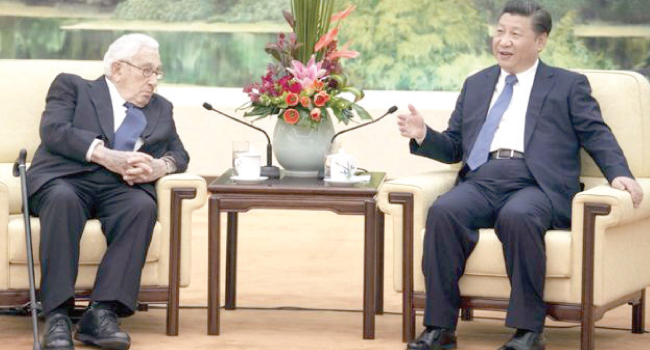 قال الرئيس الصيني شي جينبينغ لوزير الخارجية الأمريكي الأسبق هنري كيسنجر: إن الصين تراقب المواقف السياسية الأمريكية عن كثب، عقب فوز دونالد ترامب بالرئاسة.
