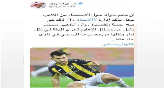 وأضاف : “لذا نأمل من وسائل الإعلام تحري الدقة في نقل الآخبار، ونقلها من مصدرها الرسمي في نادي الاتحاد فقط”