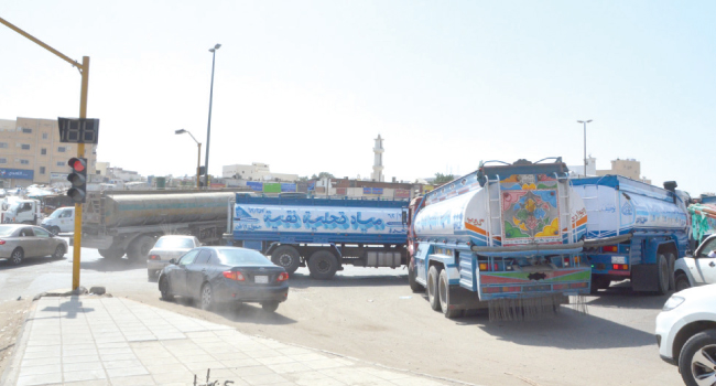 تسببت محطة تعبئة الوايتات بكيلو 14 الى ارباك في حركة المرور وزحام منذ ساعات الصباح الباكر وحتى منتصف الليل عند الإشارة المرورية وذلك بسبب تكتل صهاريج المياه وذلك لقرب موقع المحطة من الإشارة.