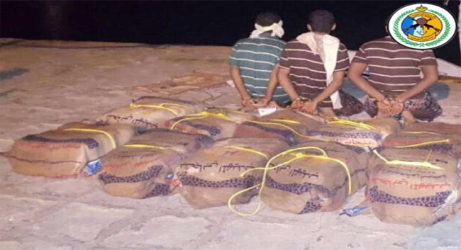 من مادة الحشيش المخدرة ، وأفاد أنه تمّ الاشتباه في قارب صيد أثناء محاولة دخوله إلى المياه السعودية