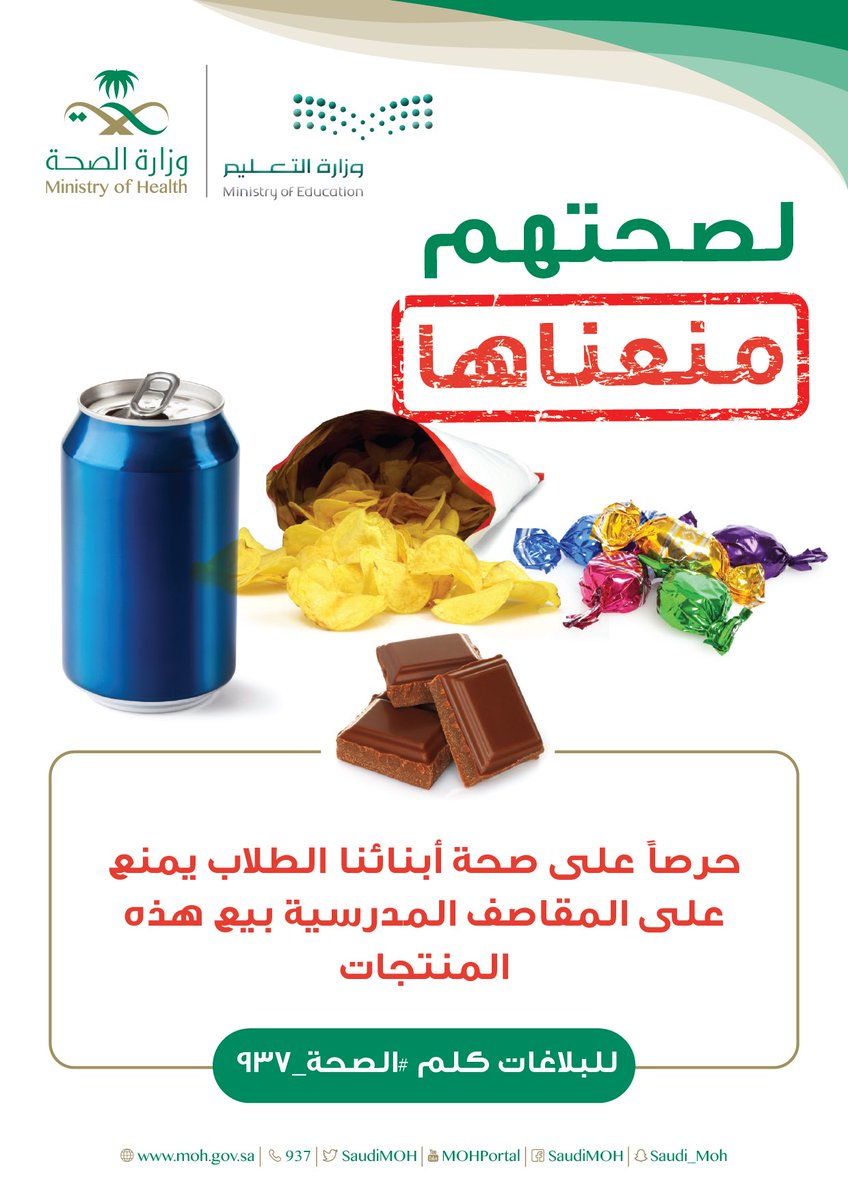 وأضافت الصحة أنه جرى منع بيع هذه المنتجات في المقاصف المدرسية بالتعاون مع وزارة التعليم ,مهيبةً بالجميع التعاون معها من خلال الاتصال على 937 للتبليغ عن المقاصف المخالفة .