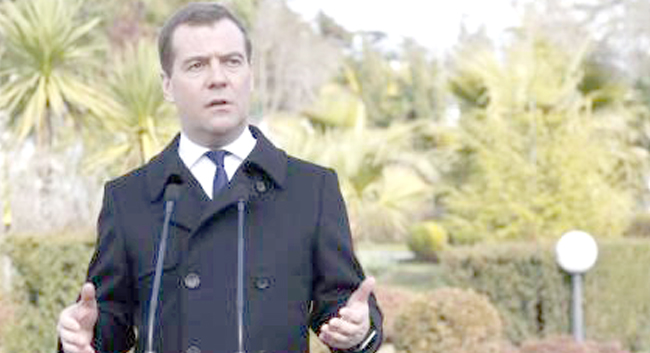 وقال ميدفيديف على تويتر بعد أن هبطت طائرته في المدينة الرئيسية في المنطقة “أنا في سيمفروبول”.