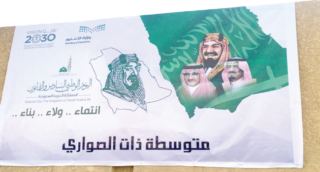 توشحت ميادين وشوارع المدينة المنورة والمباني التعليمية والمراكز التجارية ، بالأعلام الخضراء وصور المؤسس الملك عبدالعزيز بن عبدالرحمن آل سعود،طيب الله ثراه، وصور القائد الوالد خادم الحرمين الشريفين الملك سلمان بن عبدالعزيز آل سعود وسمو ولي العهد وسمو ولي ولي العهد،حفظهم الله،احتفاء وابتهاجا بالذكرى الـ(86) لليوم الوطني للمملكة.