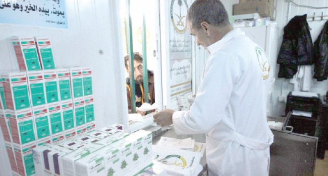 وأوضح المدير الطبي للعيادات التخصصية السعودية الدكتور حامد المفعلاني أن العيادات السعودية ومن خلال الصيدلية التابعة لها تعمل على توفر الأدوية والمستلزمات الطبية الضرورية للشقيق السوري داخل مخيم الزعتري لينعم بأفضل رعاية صحية في بيئة اللجوء الصعبة ، مضيفاً أن العيادات تعمل على تأمين الأدوية بشكل دوري ومنتظم لعدد من مراجعي عيادات الأمراض المزمنة والمتمثلة بأمراض السكري والقلب وضغط الدم.