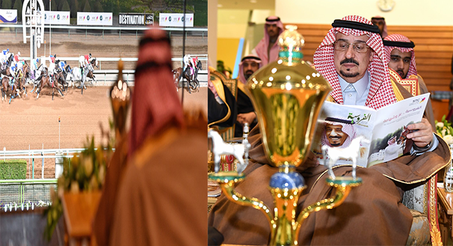 وصاحب السمو الملكي الأمير محمد بن فيصل بن محمد بن سعود بن عبدالعزيز ومدير عام نادي الفروسية عادل بن عبدالله المزروع .