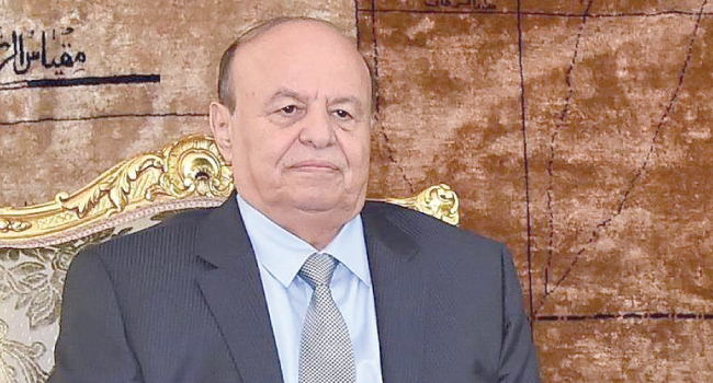 وقال الرئيس اليمني، “إن مساعينا للسلام لا يمكن أن تتجاوز أبدا تضحيات شعبنا الغالية وأهدافه النبيلة، ولا يمكن لأي حلول سلمية أن تتجاوز إنهاء الانقلاب وكل ما ترتب عليه أولا، من خلال انسحاب المليشيات المسلحة، وتسليم السلاح والمؤسسات، ثم استكمال مسار الانتقال السياسي، بإقرار مسودة الدستور الجديد والذهاب لانتخابات شاملة”.
