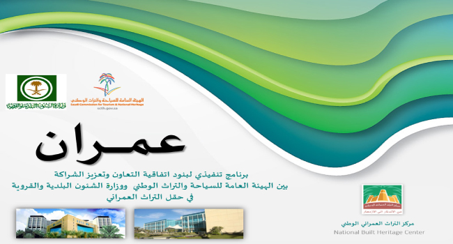 أطلقت الهيئة العامة للسياحة والتراث الوطني مؤخرًا، ضمن خططتها لتنفيذ برامجها في المحافظة على التراث العمراني وتطويره، برنامج “عمران” الذي يهدف إلى تعزيز الشراكة والتعاون بين الهيئة، ممثلة في مركز التراث العمراني الوطني، ووزارة الشؤون البلدية ممثلة في الأمانات والبلديات, لتفعيل جملة من الموضوعات المشتركة تشمل رفع درجة التنسيق على مستوى التخطيط الوطني والإقليمي والمحلي في إطار مخططات التنمية الشاملة، إلى جانب المحافظة على هوية المدن والقرى التراثية والتاريخية، وربطها بالوظائف الأساسية وتطوير أنظمة وتشريعات البناء وفقا لضوابط التنمية العمرانية.