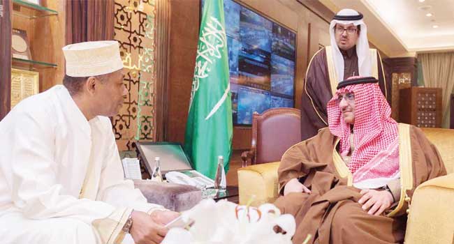 تسلم صاحب السمو الملكي الأمير محمد بن نايف بن عبدالعزيز ولي العهد نائب رئيس مجلس الوزراء وزير الداخلية رسالة خطية لخادم الحرمين الشريفين الملك سلمان بن عبدالعزيز آل سعود – رعاه الله ـ من فخامة الرئيس عثمان غزالي رئيس جمهورية القمرالمتحدة .