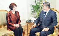 القاهرة – وكالات : قالت كاثرين آشتون، الممثل الأعلى للسياسة الأمنية والخارجية بالاتحاد الأوروبي، عقب لقائها امس الرئيس المصري المعزول محمد مرسي، إنه بصحة جيدة…