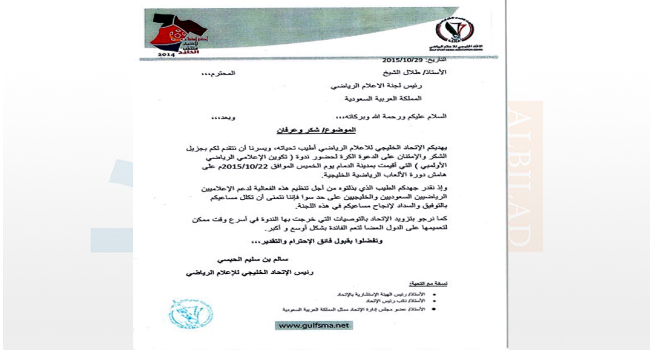 الرياض – البلاد قدم الاتحاد الخليجي للإعلام الرياضي شكره للجنة الاعلام الرياضي السعودية وللجنة العليا المنظمة لدورة الألعاب الخليجية على تنظيم ندوة (صناعة الإعلامي الأولمبي)…