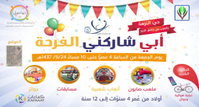 الدمام-حمودالزهراني تستعد لجنة التنمية الاجتماعية الاهلية لإحياء الجامعيين والنزهة وهجر والفردوس بالدمام ممثلةً بلجنة ” تواصل” لإطلاق المهرجان الاجتماعي الترفيهي ” أبي شاركني الفرحة” للعام…