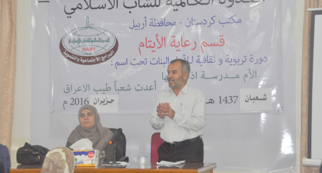 جدة_غفران إبراهيم نظم مكتب الندوة العالمية للشباب الإسلامي في مدينة أربيل عاصمة إقليم كردستان العراق دورة تربوية ثقافية لليتيمات تحت شعار (الأم مدرسة إذا أعددتها…