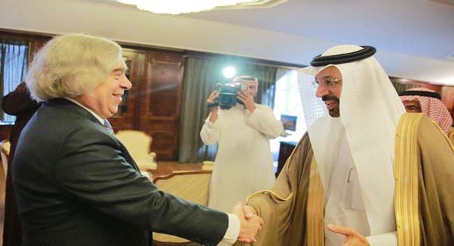 اجتمع وزير الطاقة والصناعة والثروة المعدنية المهندس خالد بن عبدالعزيز الفالح في مكتبه بالوزارة اليوم، مع معالي وزير الطاقة الأمريكي أرنست مونيز، والوفد المرافق له .